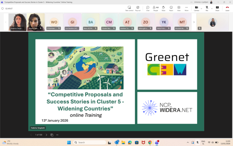 On 13 January 2026, STREAM project had the honour of being presented as a Widening Country success story at the online training “Competitive Proposals and Success Stories in Cluster 5 – Widening Countries”, organised by NCP_WIDERA.NET in collaboration with GREENET.